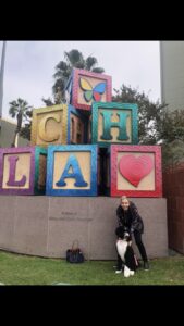 So today was the day of her (our) evaluation….and let me tell you the process is intense! Her exam was held at Children’s Hospital Los Angeles, which had extra meaning to me because my son has a disease that has resulted in multiple hospitalizations and visits to CHLA. The exam is intense….I liken it to taking the Bar Exam for prospective attorneys! There were at least 8 examiners in the room, and she was faced with a multitude of scenarios that a therapy dog must be able to navigate successfully. Some of those scenarios….people very angrily yelling at each other, and then wanting to pet her. Someone approaching her in a big robe and big hat walking very clumsily with a squeaky walker. A neutral dog coming into the room and seeing that dog get excitedly fussed over by a group of people, and not reacting. A sudden loud noise nearly. Getting bumped in her blind spot. Walking by food on the floor. Having an exuberant group want to pet her. Getting a restraining hug. Politely accepting a treat from a stranger. Getting brushed by a stranger and having all paws, both ears and her teeth examined. Walking through a crowd of people who are passing all around her, talking, walking quickly or in wheelchairs, and remaining focused. Like I said – it was intense!