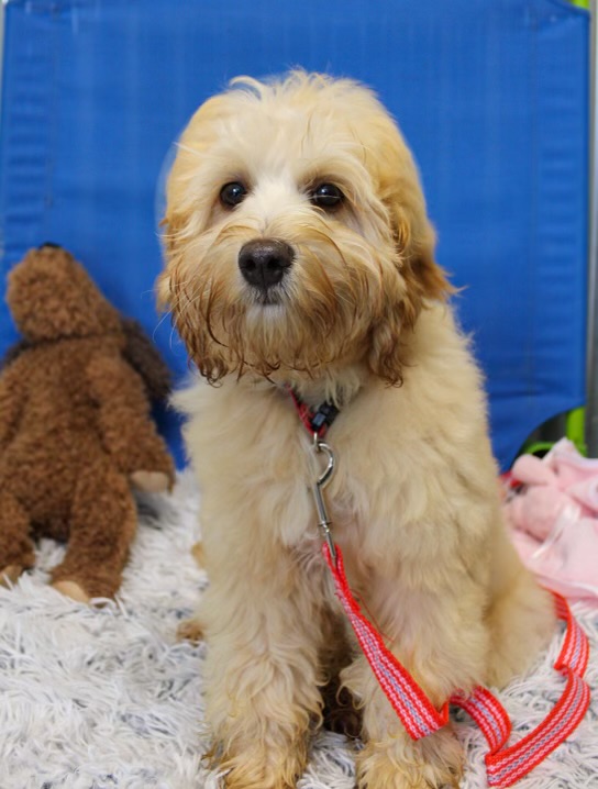 Welcome Amber, our captivating caramel-colored girl with an adorable splash of white on her chest, a small wonder and should weigh between 20-30 lbs full grown. Her coat is a luxurious, wavy fleece, and is non-shedding. Amber’s essence is a wonderful mix of joy and calm and thoughtfulness. Once she knows you, she will love you. She would do really well in a more mature home. She embodies a bubbling well of affection and always ready with a cheerful wag and a snuggle.