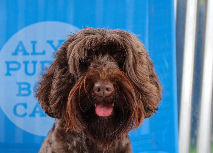 This chocolate nugget of love is about 25 lbs pounds and she has a chenille, soft, wavy fleece, non-shedding coat. Layla is kind, friendly, sweet, happy, bouncy and funny. She likes everyone, is confident and LOVES the LOVE. Layla is good around people of all ages. She is able to go as long as you want to go, but loves the love too! Layla is the momma of one of our prior Doodle Ambassador’s and is retired from her breeding career from one of the best breeder’s in the country, Hales Labradoodles with lines that I personally have known many in her direct lines, generations of dogs that I have trained, owned and had in my elite training program. She is spayed, microchipped and current on all vaccinations. You can see her daily on FB and Instagram stories at Aly’s Puppy Boot Camp