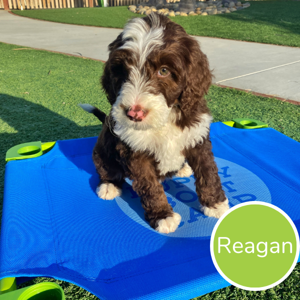 Reagan the Multi-Gen Bernedoodle : Born 9/14/22 – Reagan Is a stunning chocolate tri-colored Mulit-Gen Bernedoodle with a fleece, chenille soft, non-shedding coat. She should weigh between 50-65 lbs when fully grown. I have waited a long time for this litter! She comes from the amazing breeding program of Gail’s Doodles. She is a sweet, gentle, calm, and thoughtful pup. I love her willingness to please and sweet nature. She is so sweet in mind, body and soul! Reagan is a people-lovin’ pup for sure! She will be a gentle big girl that loves the love when she grows up and is so easy to get along with. She is the dog that will make a therapy dog, or emotional support dog or anxiety relief dog or service dog. She is THAT dog in heart, mind and body! Some of her relatives of my past Doodle Ambassadors have gone on to do Therapy Dog or ESA work. These pups come from lines that I adore and have trained many through the years and I LOVED THEM! I have owned & trained siblings of momma Maize and Grandma Cleo! They are both funny, gentle, sweet and loyal. Poppa Moose, is jaw-dropping handsome full brother to my prior Doodle Ambassador, Samson, and Grandpa Tucker has been the daddy of MANY of my prior Doodle Ambassadors and all are exceptionally sweet & kind.! These are legendary lines that I have trained and personally owned in our Bernedoodle Ambassador family. This pup has all that her lineage has promised, and it happens to be wrapped in the gorgeous stout, balanced Bernedoodle body that I love. I love these lines! I love it when the generations gather at APBC! My Doodle Ambassadors are special; I personally temperament test these pups to and only allow the BEST into my Ambassador program. The unique thing is: This is a pup that I would want to be my own! My Ambassadors are trained by me & my team for approximately 6 months before they go to their PERFECTMATCH™ homes and it can be arranged for our APBC team member to bring your pup directly to you! These pups are truly the BEST of the BEST. Best breeding + Best foundation training + the PERFECTMATCH™ chosen humans=BEST DOG EVER! She will be spayed before she leaves,, we have her health records since birth, micro-chipped and current on rabies, parvo/distemper, bordetella vaccinations. If you want a devoted companion to go do everything with, this is your pup! You can see her on FB and Instagram stories at Aly’s Puppy Boot Camp.