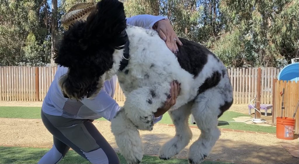 This trick evolves to the point where a dog will hop through a hoop made by your arms, ending with a hop into your arms while standing up. As we build a dog’s ability to hop on command, the practical applications are endless…hop onto a chair for pictures, hop into your SUV, Car or Truck, hop over a log out on a walk!